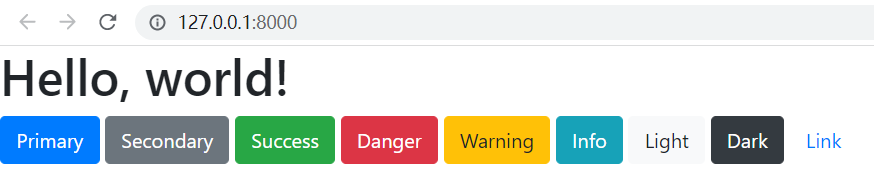 可以看到,为了更加清晰的看出我们使用上了 Bootstrap,我们加上了 Bootstrap 的按钮组件